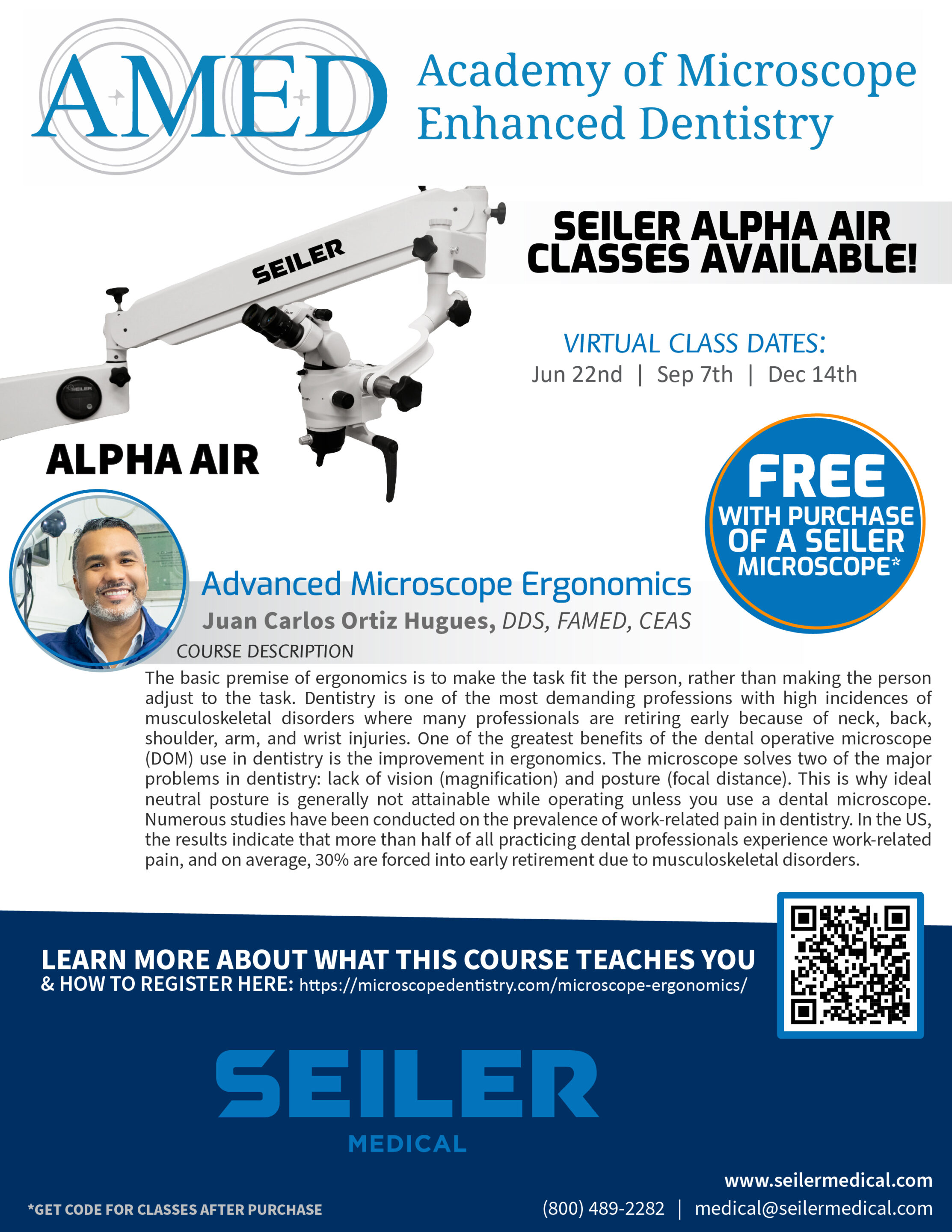 For a limited time, purchase a new dental microscope from Seiler Medical and get a free OHI-S training course “Microscope Ergonomics for Minimally Invasive Work Protocols” by Dr. Arguets & Dr. Coraini.